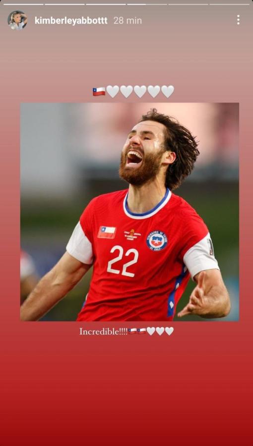 Kimberley Abbott, novia de Ben Brereton, posteó una foto en sus redes sociales celebrando el primer gol del delantero con La Roja.