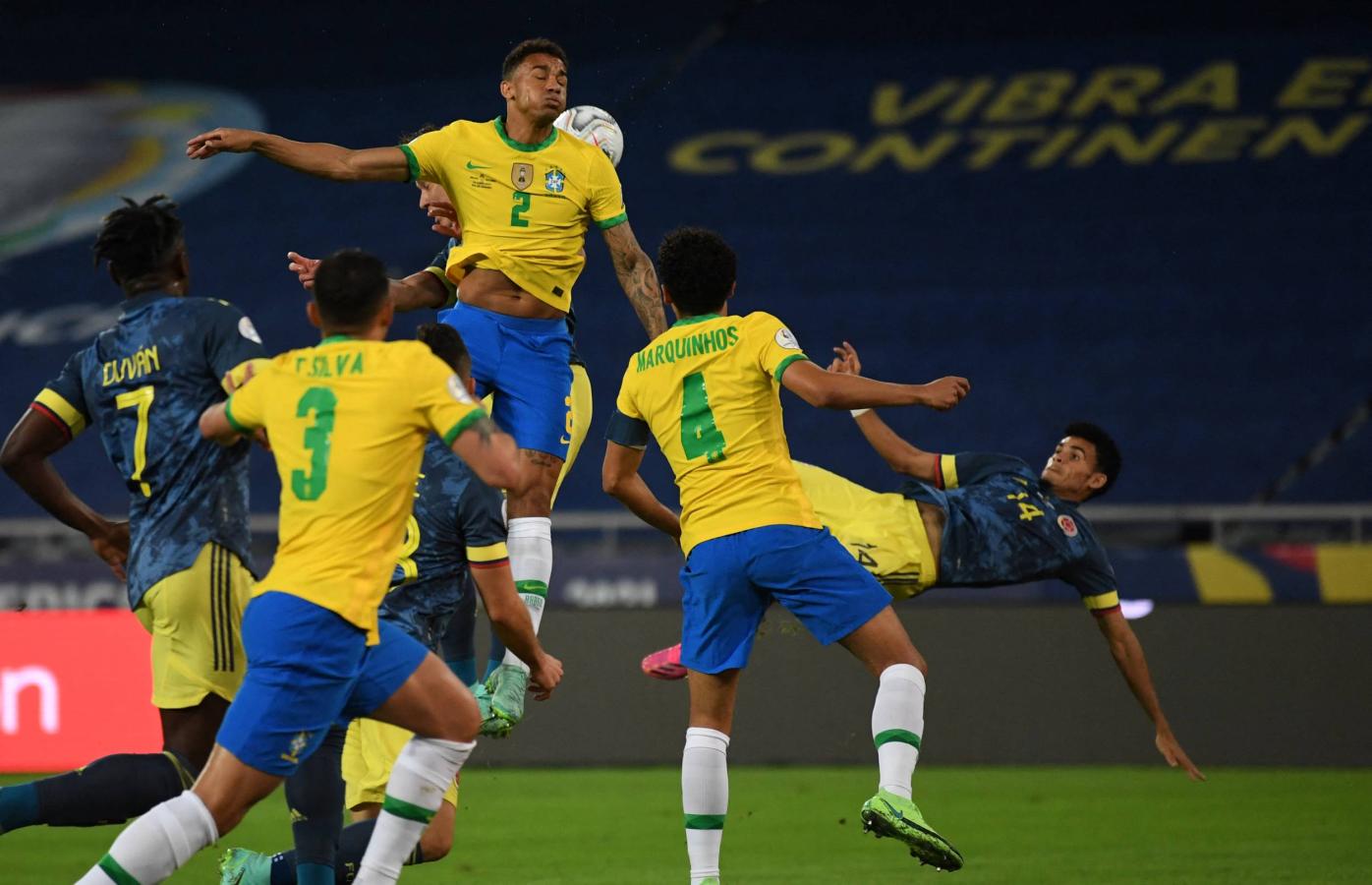 Brasil dominaba a Colombia sin discusión, pero con el gol se soltaron los dirigidos por Reinaldo Rueda y empezó a controlar las acciones del partido. No sirvió de mucho, ya que tras un gol que el juez del partido, Nestor Pitana, amagó con anularlo, concedió el empate de Brasil con gol de Casemiro. Este gol tuvo cerca de 10 minutos detenido el partido, ante la protesta de los jugadores colombianos.