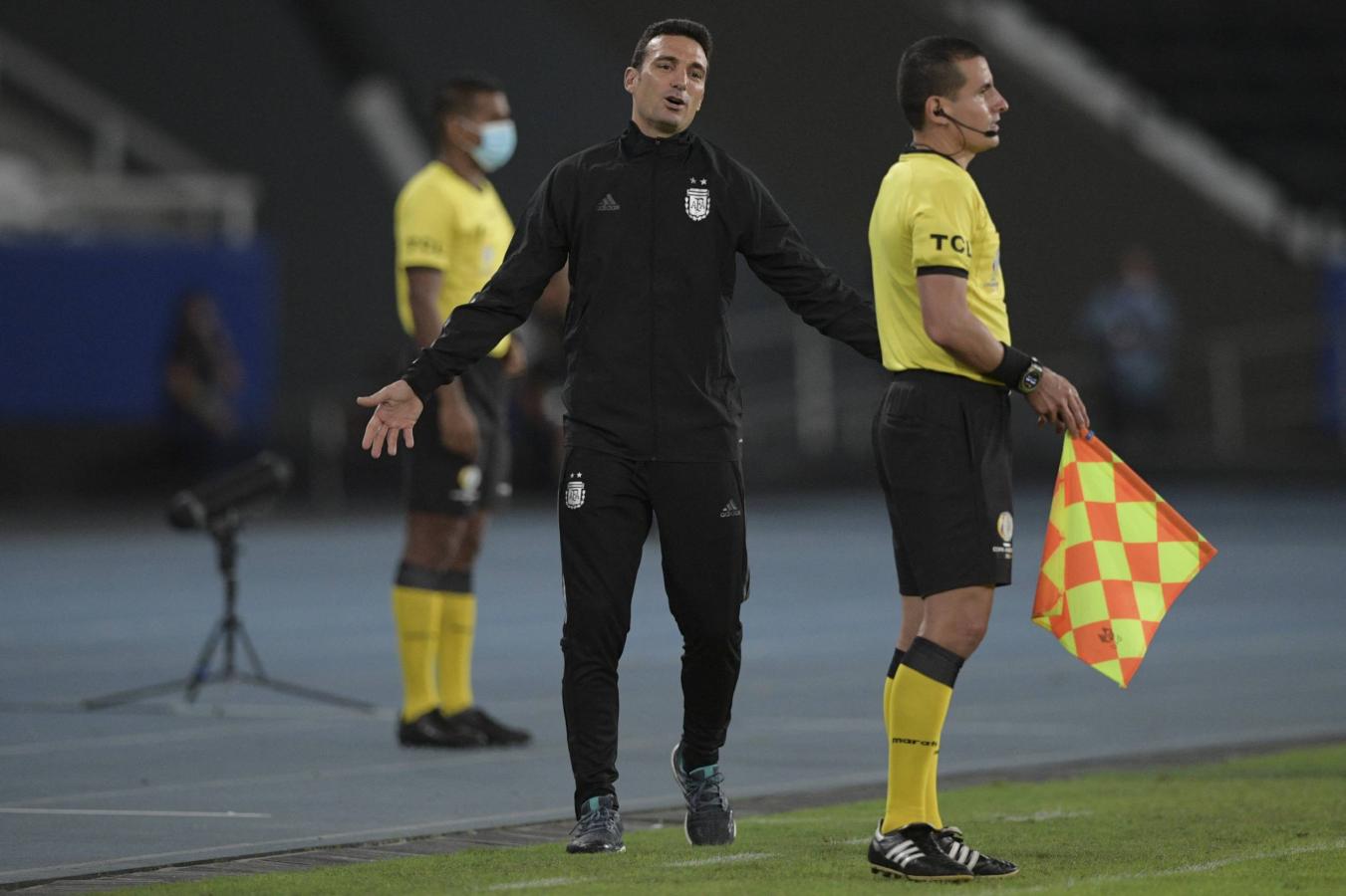 Scaloni fue durísimo con el estado del campo de juego, que es impresentable jugar en estas condiciones "Queremos jugar la Copa América, pero nos encontramos con una cancha donde no se puede jugar al fútbol. Es lamentable el estado de la cancha. Aún así se jugó, en una cancha que es para otro deporte, no para el fútbol".