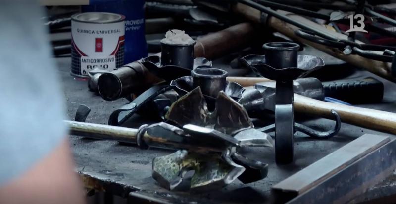 Luego, conoció al patrimonio vivo de la comuna, Iván Gonzalez, un herrero que trabaja en “El amigo Lucho” -nombre dedicado a su padre- quien construye verdaderas obras de arte en fierro con material reciclado.