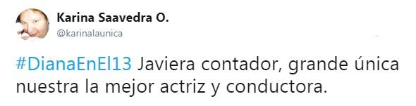 Se “robó” completamente la atención. La actriz Javiera Contador fue una de las invitadas del segundo episodio de “Diana”, participación con la que se lució gracias a su simpatía y buenas intervenciones.