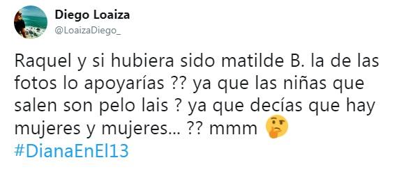 Los usuarios de Twitter criticaron duramente a Raquel por su opinión, calificándola de “inconsecuente”, "doble estándar" y “machista”.