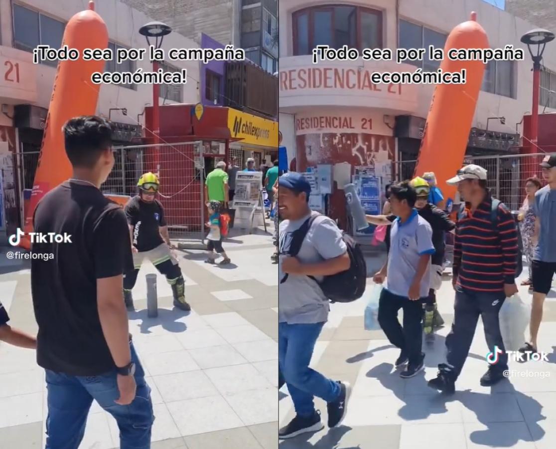 Un bombero está "dejando la grande" en redes sociales con su energético baile para obtener donaciones en plena calle del centro de Arica.