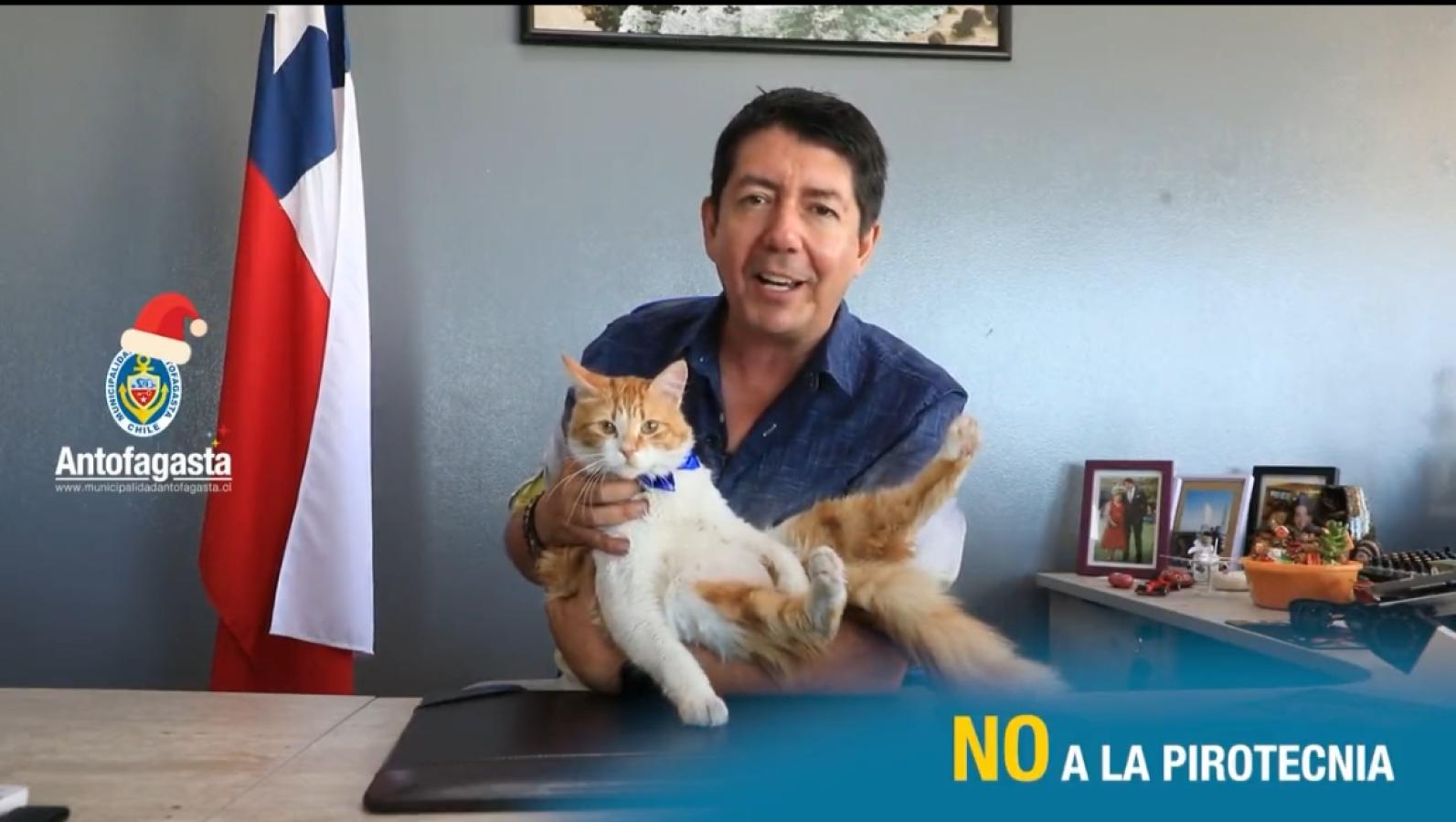 Alcalde de Antofagasta anuncia que no habrán fuegos artificiales con tierno video junto a su gato