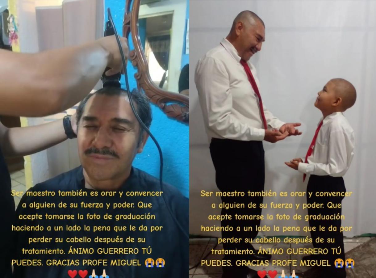 Dicho esto, añaden: "Ánimo guerrero, tú puedes. Gracias profe Miguel", mientras se ve al profesor rapándose por completo su cabello.
