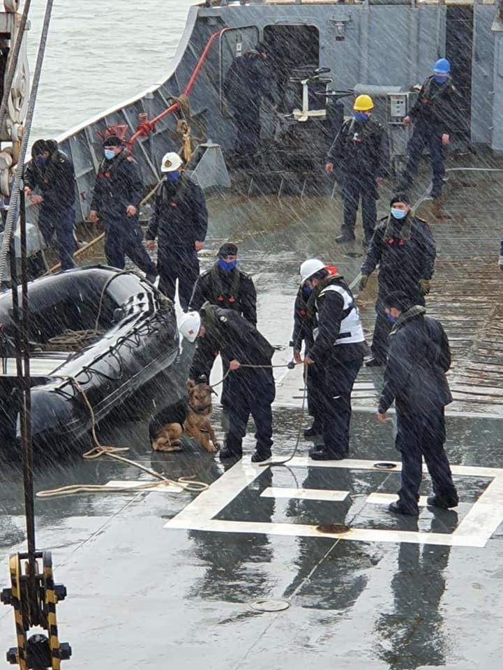 Armada rescata a perro que estaba nadando en el mar: Se busca a su dueño