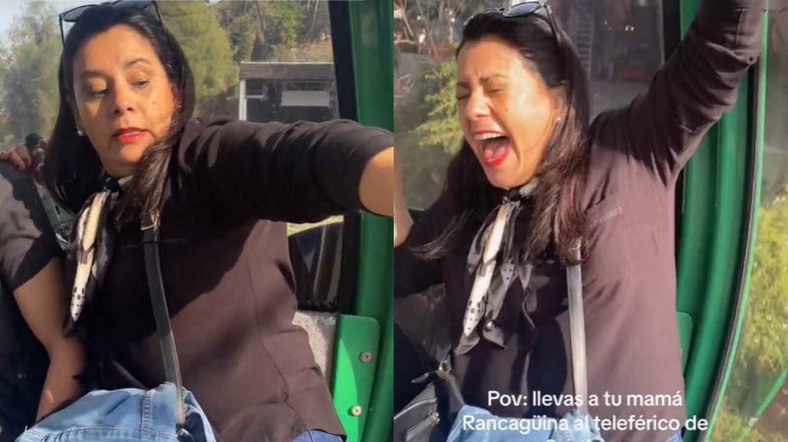 "Llevas a tu mamá rancagüina al teleférico de Santiago", escribió la joven, al mismo tiempo que en el video se puede apreciar a su madre gritando y alegando por el "vértigo" que le está afectando.