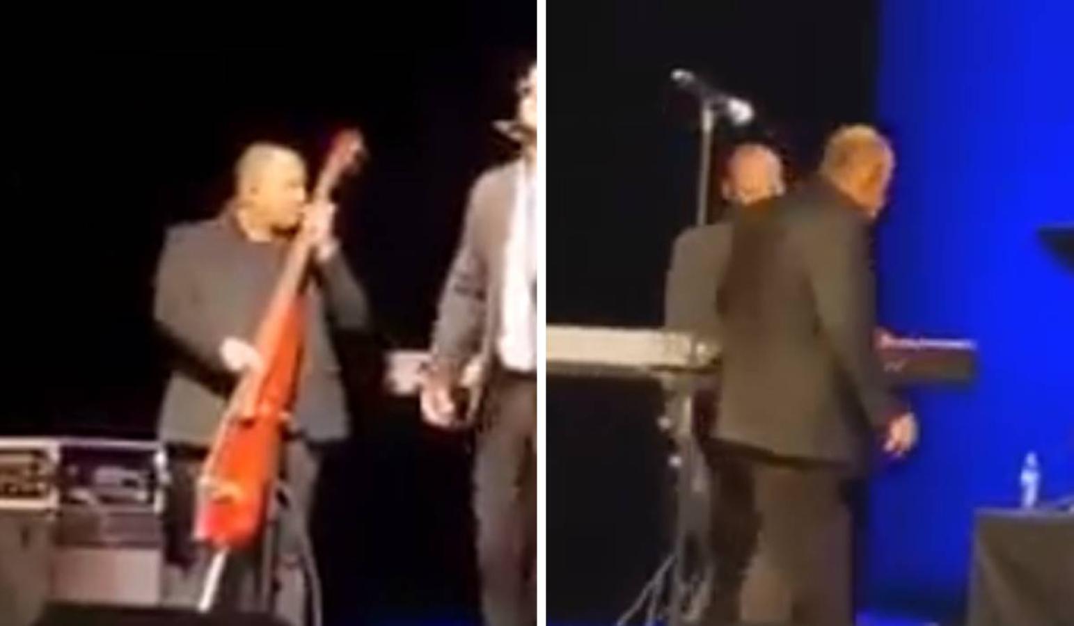 El músico se encontraba tocando en el concierto en Nueva York muy animadamente antes de comenzar a sentirse mal y luego deambular hacia el fondo del escenario. Finalmente, el músico se desmaya detrás de sus compañeros.