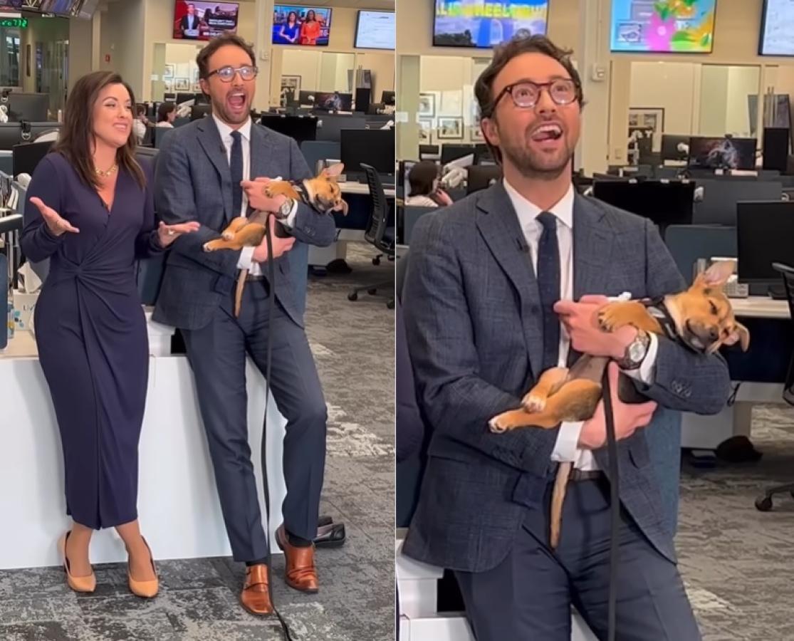Un cachorro no logró aguantar el sueño en plena transmisión en vivo y se durmió en los brazos del presentador de noticias, lo que llenó de ternura al estudio y al resto del equipo de televisión.