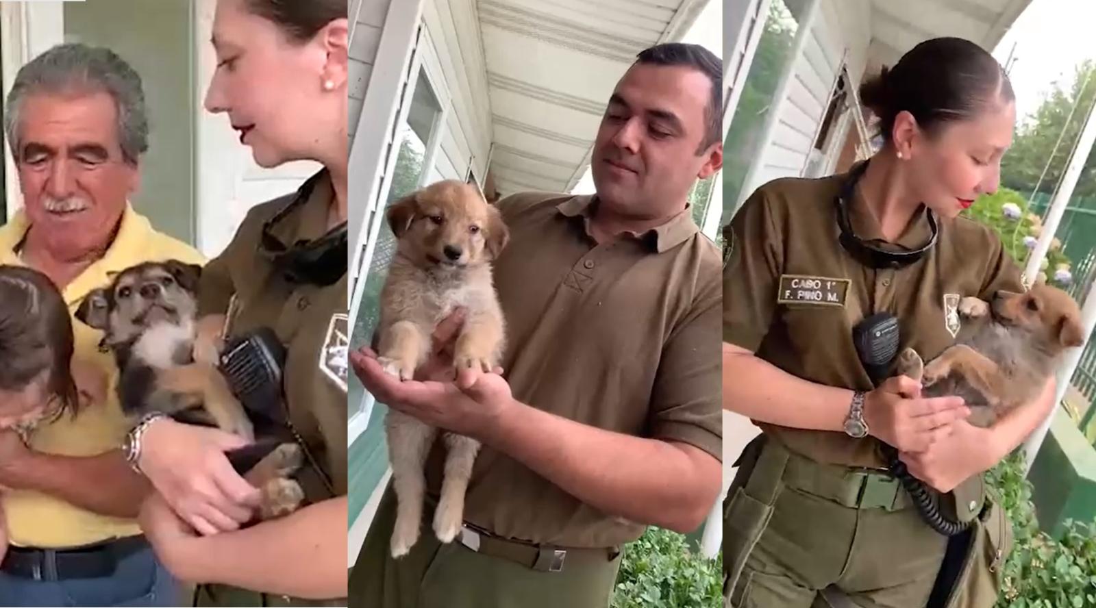 Cachorros rescatados de incendios por Carabineros fueron adoptados: Uno quedará en la institución