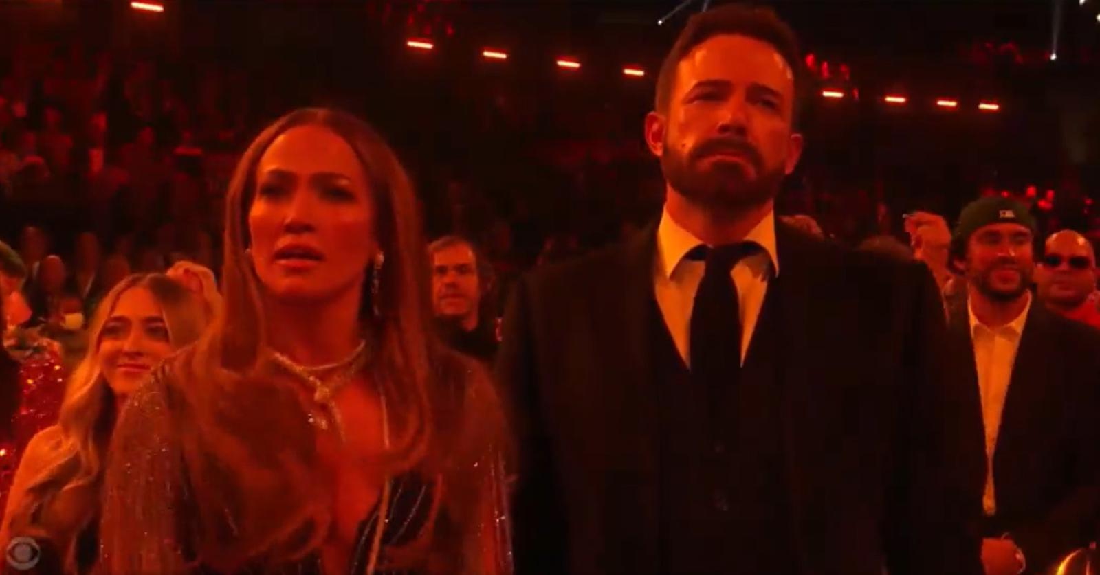 En varias ocasiones, la cámara se quedó con la pareja y los espectadores captaron que mientras JLo sonreía y aplaudía, el actor no se movía y se quedaba con una cara de "sufrimiento", lo que se notó aún más en la presentación de Stevie Wonder.