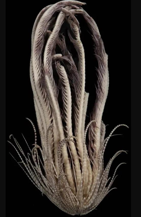Las llamadas "estrellas de plumas" pertenecen a la clase de los crinoideos (cuyo tamaño ronda los 15 a 30 centímetros) y son similares a otros animales oceánicos invertebrados, como las estrellas de mar y los pepinos de mar.