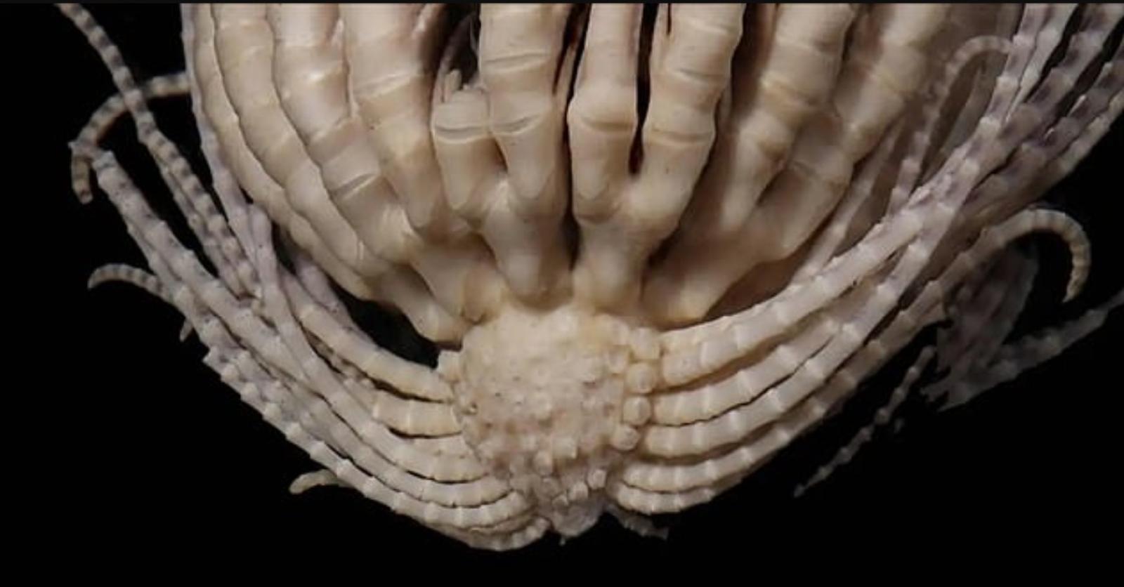 Se trata una nueva criatura submarina, del género de crinoideos Promachocrinus, un animal de 20 brazos al que han llamado "la estrella antártica de plumas de fresa".