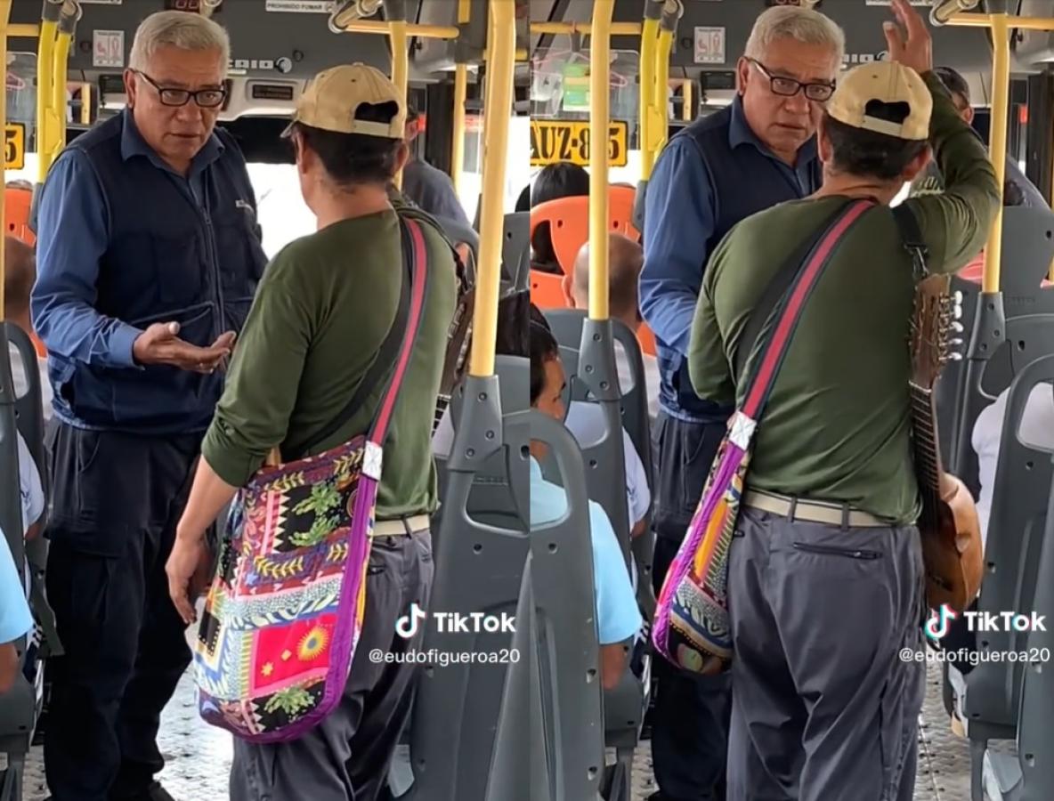 El registro fue difundido a través de TikTok y deja en evidencia el momento exacto en el que el hombre detrás del volante pide al músico ambulante que pague su boleto. "Pague su pasaje, pague su pasaje", dice el conductor bajo la atenta mirada del resto de los pasajeros.