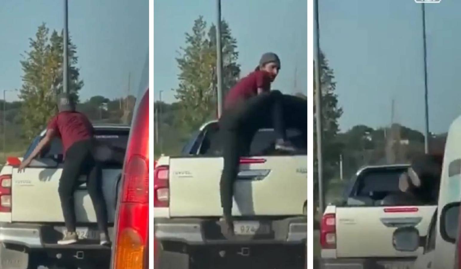 Un reciente video de un hombre que trata de robar a una camioneta que andaba por la carretera se hizo viral en medios argentinos y redes sociales.