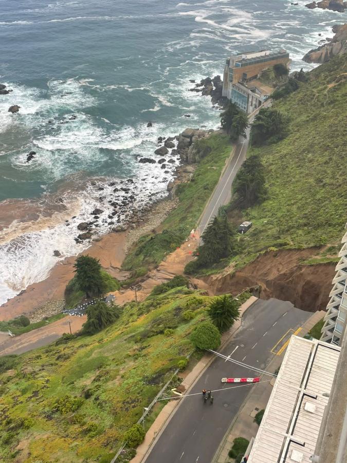 El sistema frontal sigue causando estragos y ahora los habitantes de un edificio en Viña del Mar sufrieron los efectos de un socavón en sus cercanías.
