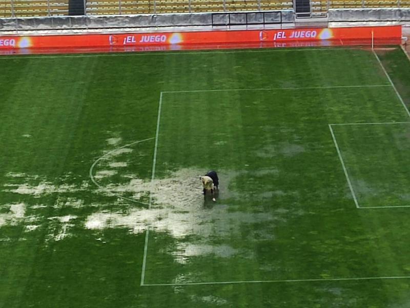 La copiosa lluvia que comenzó a caer en el recinto paceño, generó innumerables pozas de cara al crucial choque entre el seleccionado local y Chile.