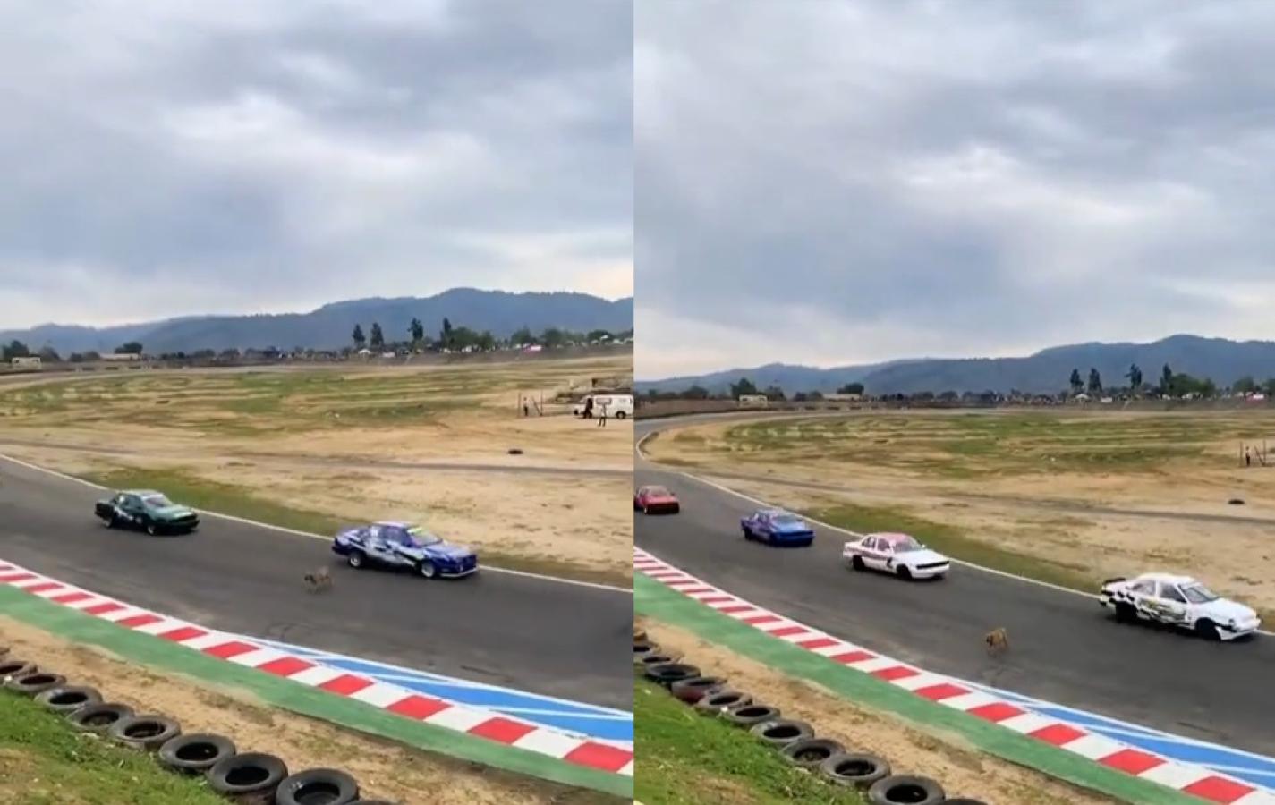 El registro fue subido a una cuenta de TikTok y fue grabado en el Autódromo Gustavo Feli Rivera, ubicado en la región de Valparaíso y se puede apreciar cómo los conductores alcanzan a esquivar al can.