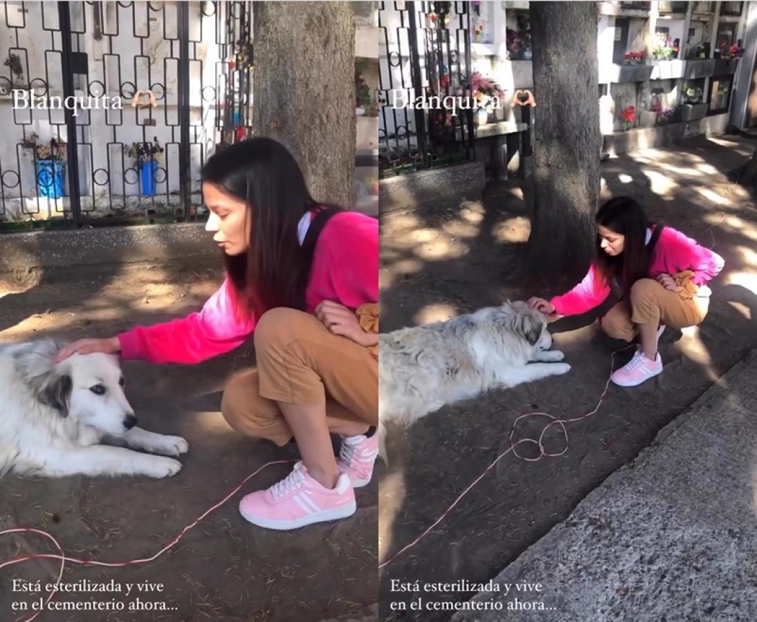 "Hace cuatro, cinco años cuando vine la conocí. Su compañero humano falleció y después se lo llevaron de vuelta al campo y ella vuelve constantemente al cementerio, vive acá", dice la joven en el registro.