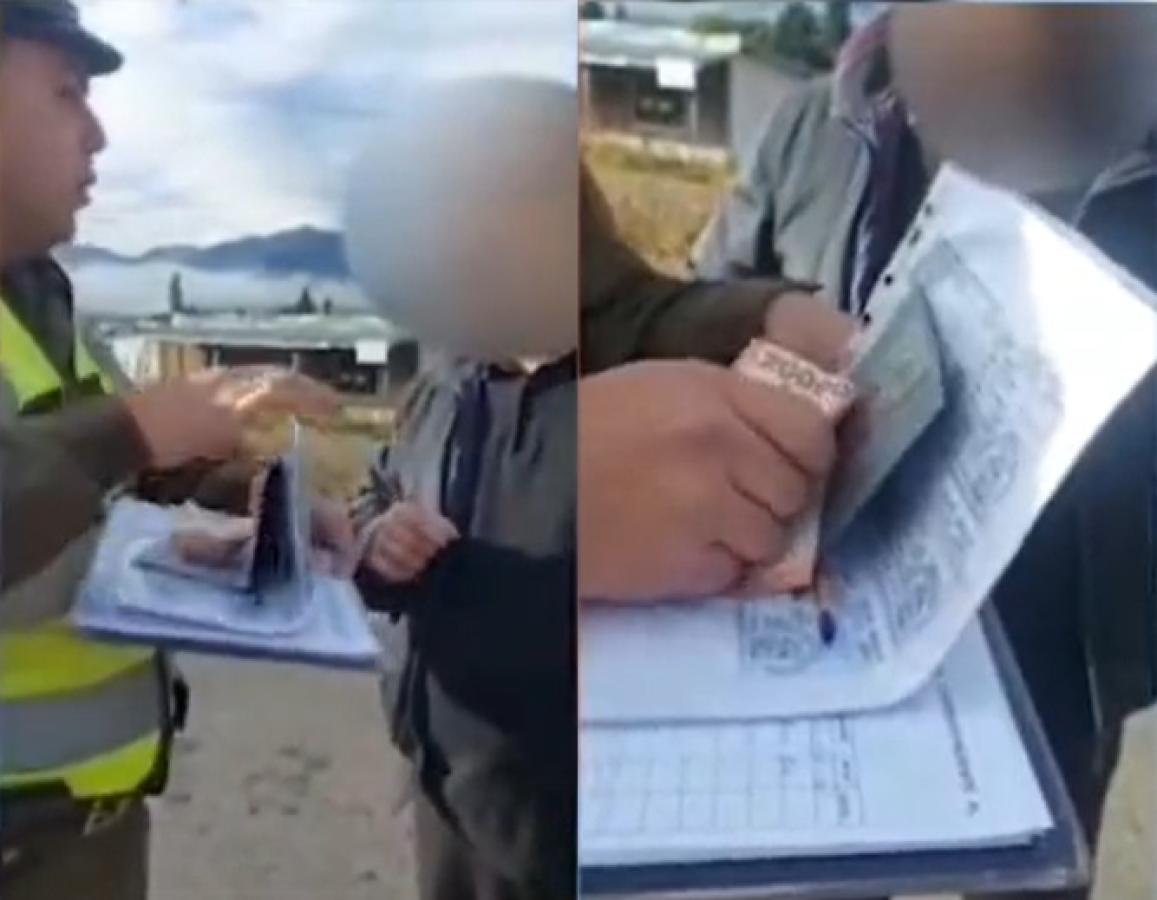 En el video se puede apreciar como uno de los funcionarios le informa al hombre que está siendo detenido, quien ofrecía el dinero para ser dejado en libertad.