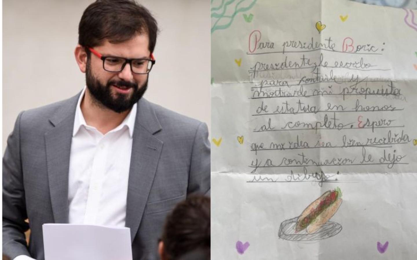 “Para el presidente Boric: presidente, le escribo para contarle y mostrarle mi propuesta de estatua en honor al completo“, escribió la niña en la carta", se lee en la carta que escribió la menor, la que viene acompañada de un especial dibujo para ejemplificar.