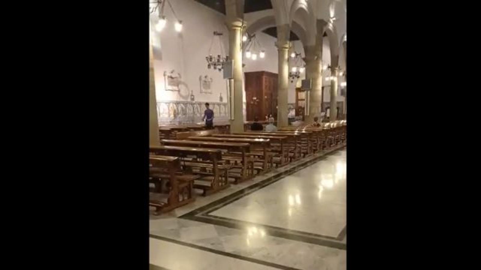 Las imágenes compartidas en redes sociales muestran a un joven dar vueltas al interior de una iglesia, justo cuando el sacerdote se encontraba realizando una misa.