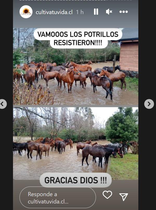 "Vamos, los potrillos resistieron, gracias a Dios", escribió en sus historias junto a una foto de los caballos rescatados.