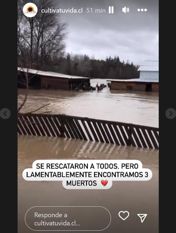 "Mi papá y mi familia están en Salto del Laja, está todo inundado, los caballos se van a morir, tiene más de 60 caballos. Tenemos cuatro perritos, Han podido rescatar a tres", había dicho la mujer muy afectada.