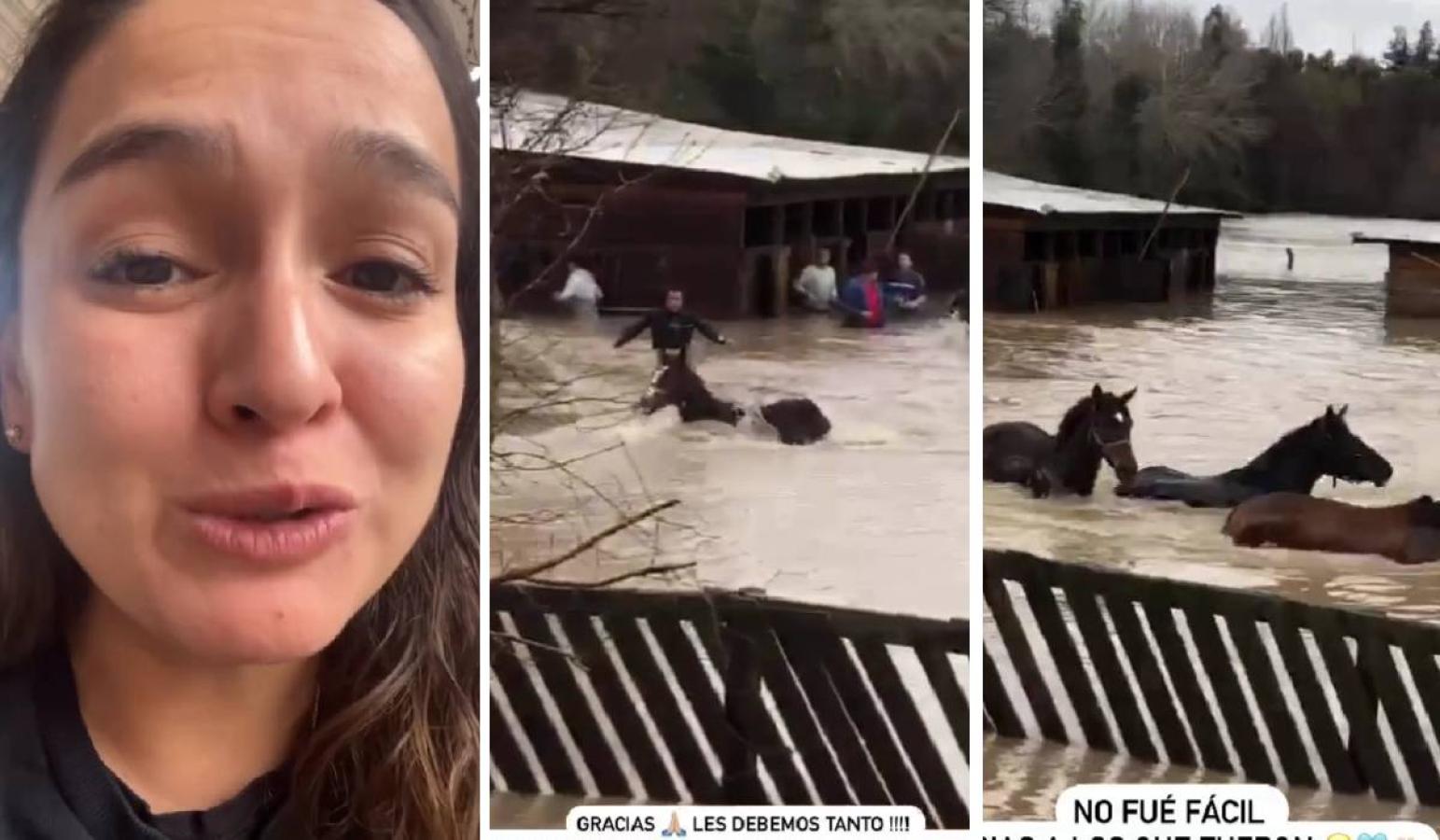 Durante la emergencia por el desborde de los ríos en Chile, se viralizaron videos de una joven que pedía ayuda para rescatar a sus más de 60 caballos aislados en la localidad de Chillancito, en las cercanías de Salto del Laja (región del Biobío).