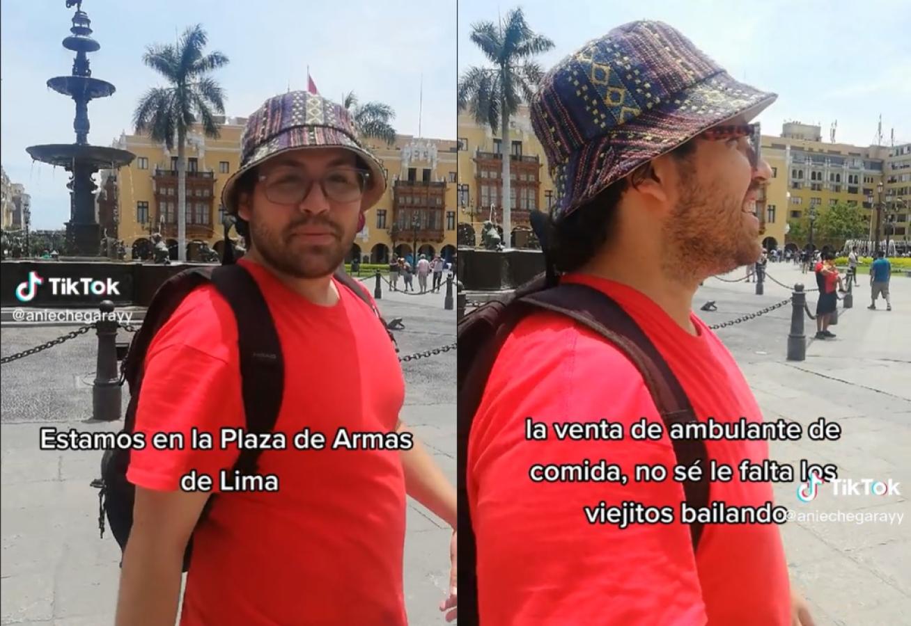 Se trata de Felipe Núñez, un joven que se encuentra viajando con su esposa y decidieron visitar la tradicional Plaza de Armas de Lima, lugar en el que hicieron una serie de comparaciones.