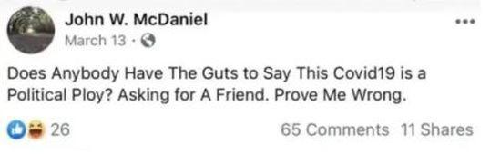 John W. McDaniel hizo noticia por sus comentarios en Facebook, donde cuestionó las medidas de precaución tomadas por Mike DeWine, gobernador de Ohio, para evitar la propagación de la enfermedad, que finalmente terminó por acabar con su vida.