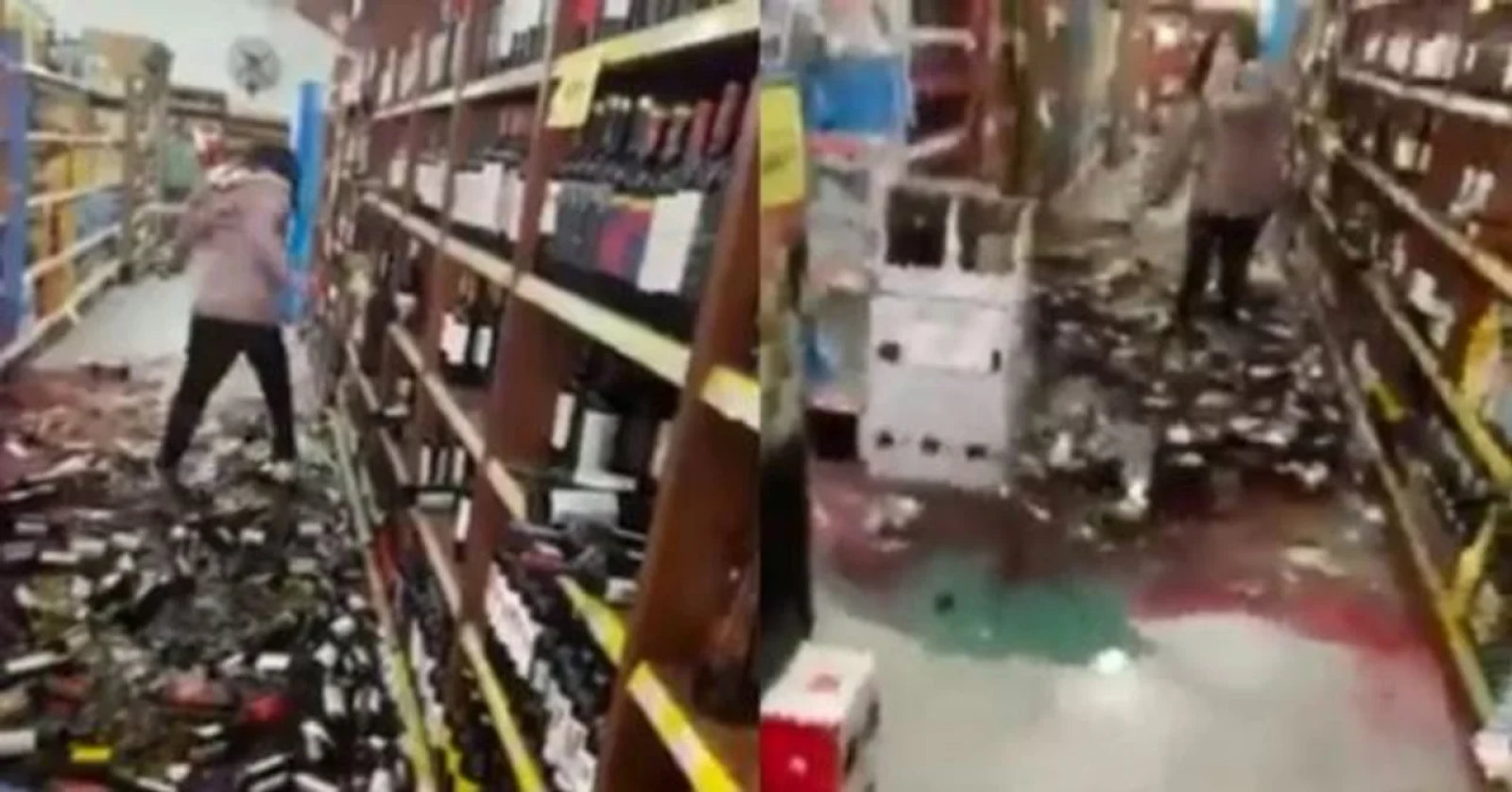 Fue a su ex trabajo a reclamar por malos tratos y terminó destruyendo la góndola de vinos