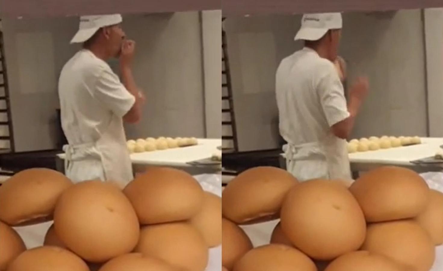 Captan a panadero lamiendo panes