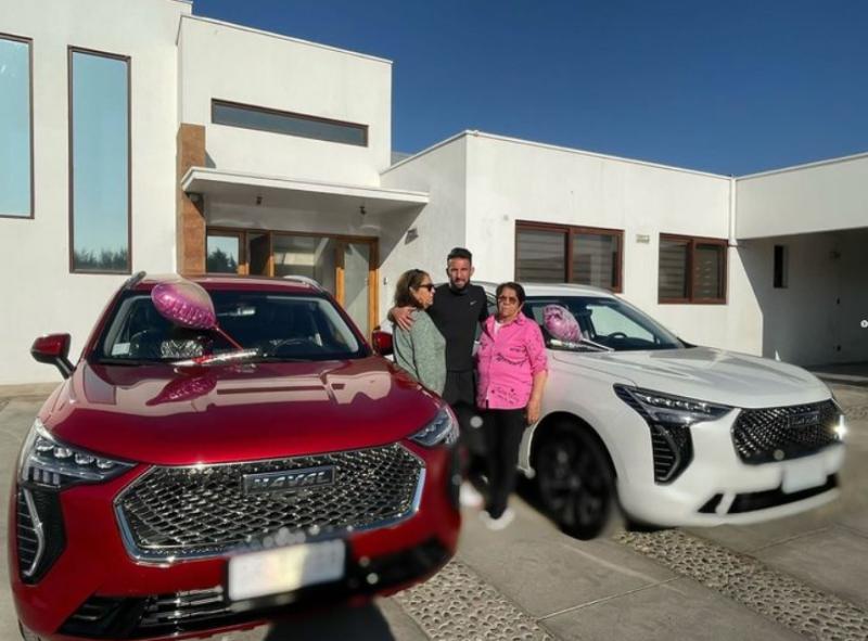 "FELIZ DÍA MAMITA Y MAMI", escribió el futbolista junto a una galería de fotos en la que aparecen su madre y su abuela, con los lujosos regalos: dos costosos y modernos vehículos.