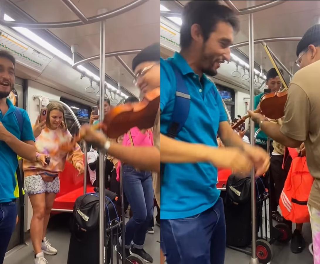 El video fue difundido por un usuario que se hace llamar "Violintrapp", quien subió el video a sus redes sociales, en el que se le puede ver intepretando "Me porto bonito" de Bad Bunny en la Línea 3 del Metro.