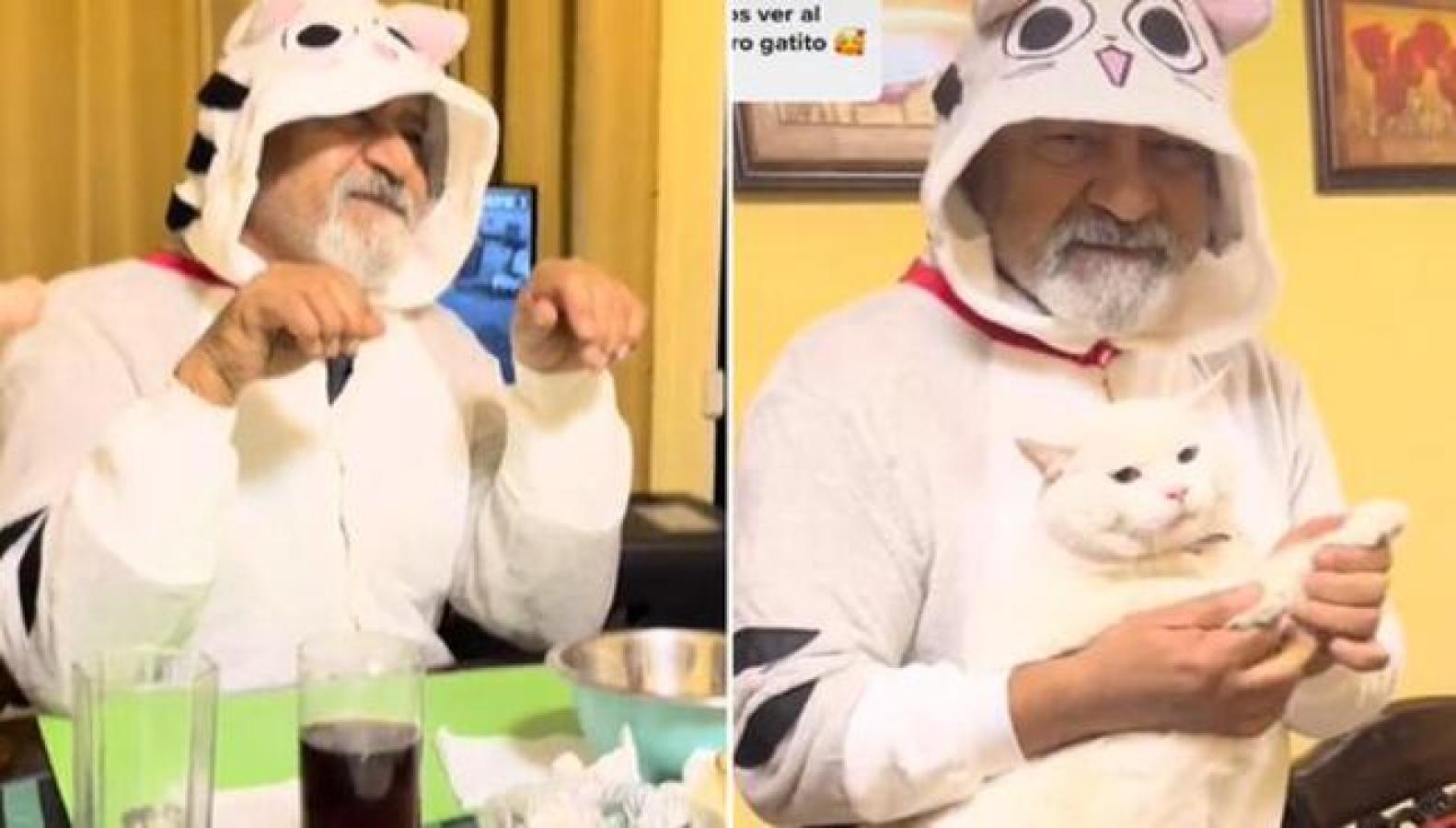 Como se observa en el video, se puede apreciar al padre en su disfraz de gato y se sentó con este en la mesa para cenar. Al ver esta situación, los integrantes del círculo familiar sacaron