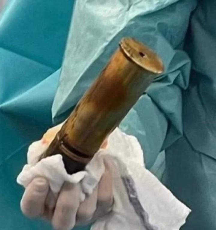 Al conocer que el sujeto no era un peligro para la integridad de los profesionales, los médicos procedieron a extraer quirúrgicamente el objeto de 20 cms de largo y 5 cm de ancho.
