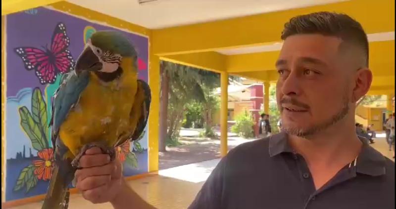 "Lo recibí sin plumas, tiene cuatro años y pueden vivir hasta 80 años. Va conmigo a todos lados” junto con esto, luego agregó que se cree perro.
