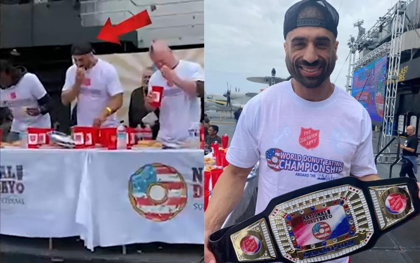 Con este asombroso logro, Webb logró un récord mundial tras comer las 59 donas y media en el Campeonato Mundial de comer donas realizado en el USS Midway en San Diego, California, Estados Unidos.