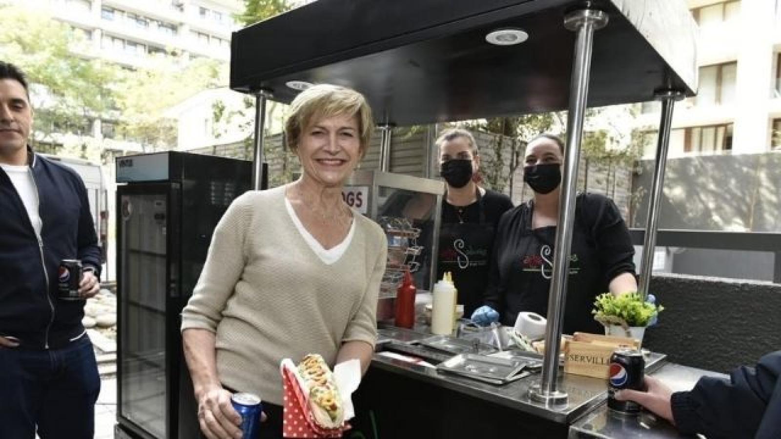 “¿Recuerdan que me invitaron a comer completos por twitter? Acá estamos”, dice al inicio del tweet compartido por la alcaldesa.