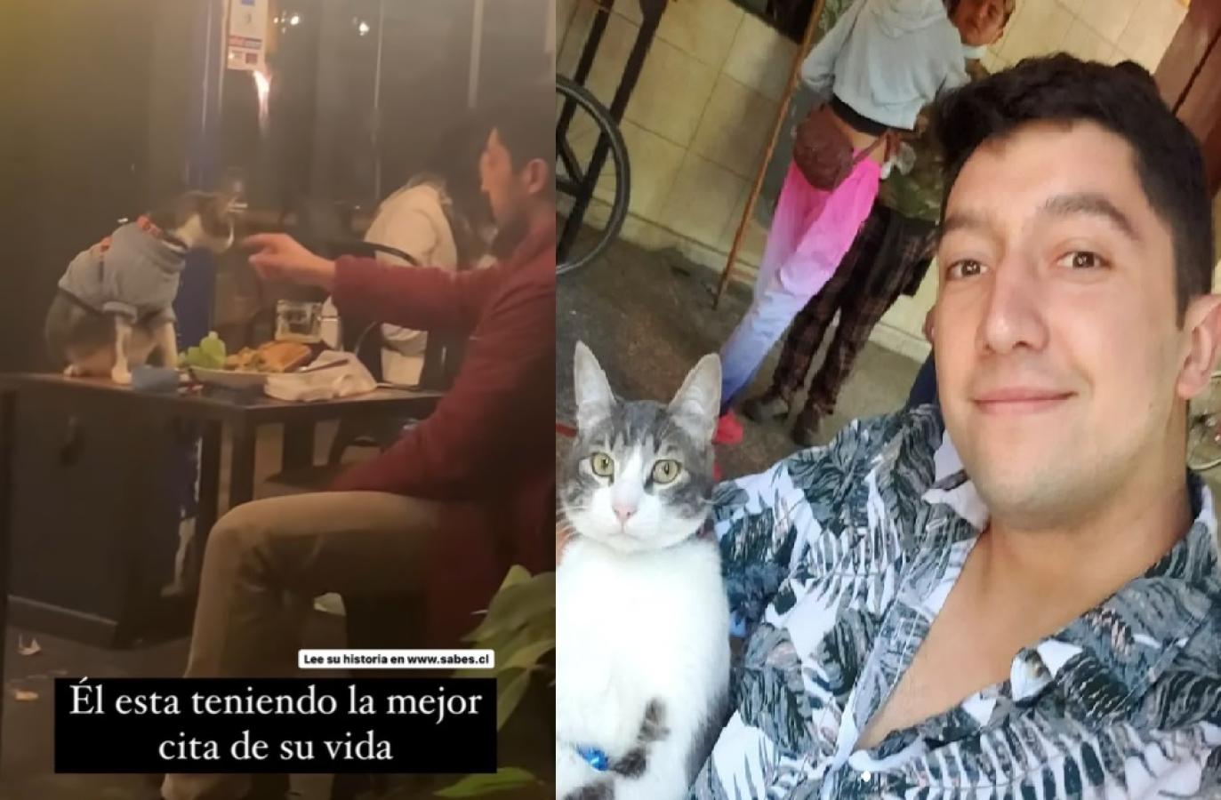 “Cuando nos estábamos yendo pasamos por fuera del local y nos sorprendió. Es más común ver un perro que un gato y fue épico. Logré capturar ese video en donde se le ve compartiendo con su gatito. Él está teniendo la mejor cita de su vida”, expresó Matus al medio local Sabes.cl.