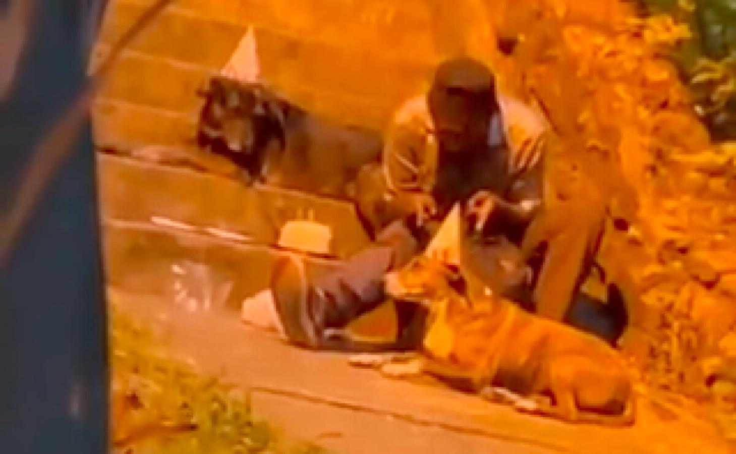 Durante los últimos días un hombre se viralizó por redes sociales luego de ser captado celebrando el cumpleaños de sus perritos en plena calle.