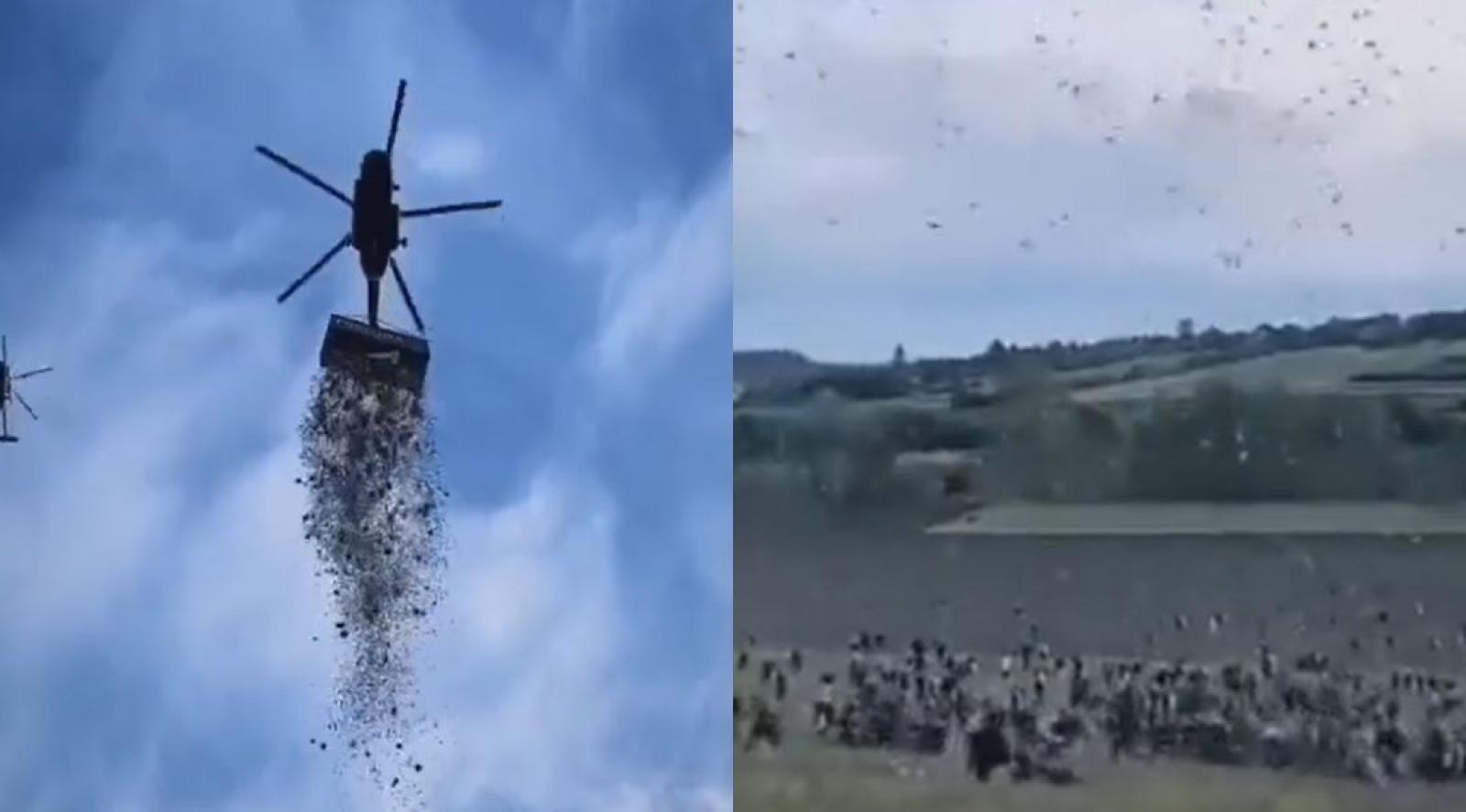 Mira cómo caen los billetes desde el helicóptero