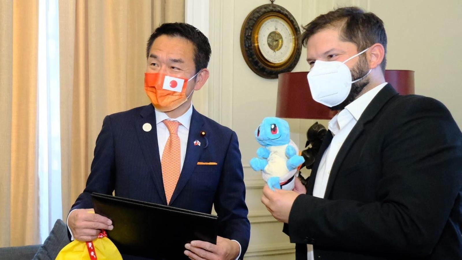 Ministro japonés regaló un peluche de Squirtle y pokebola a Gabriel Boric