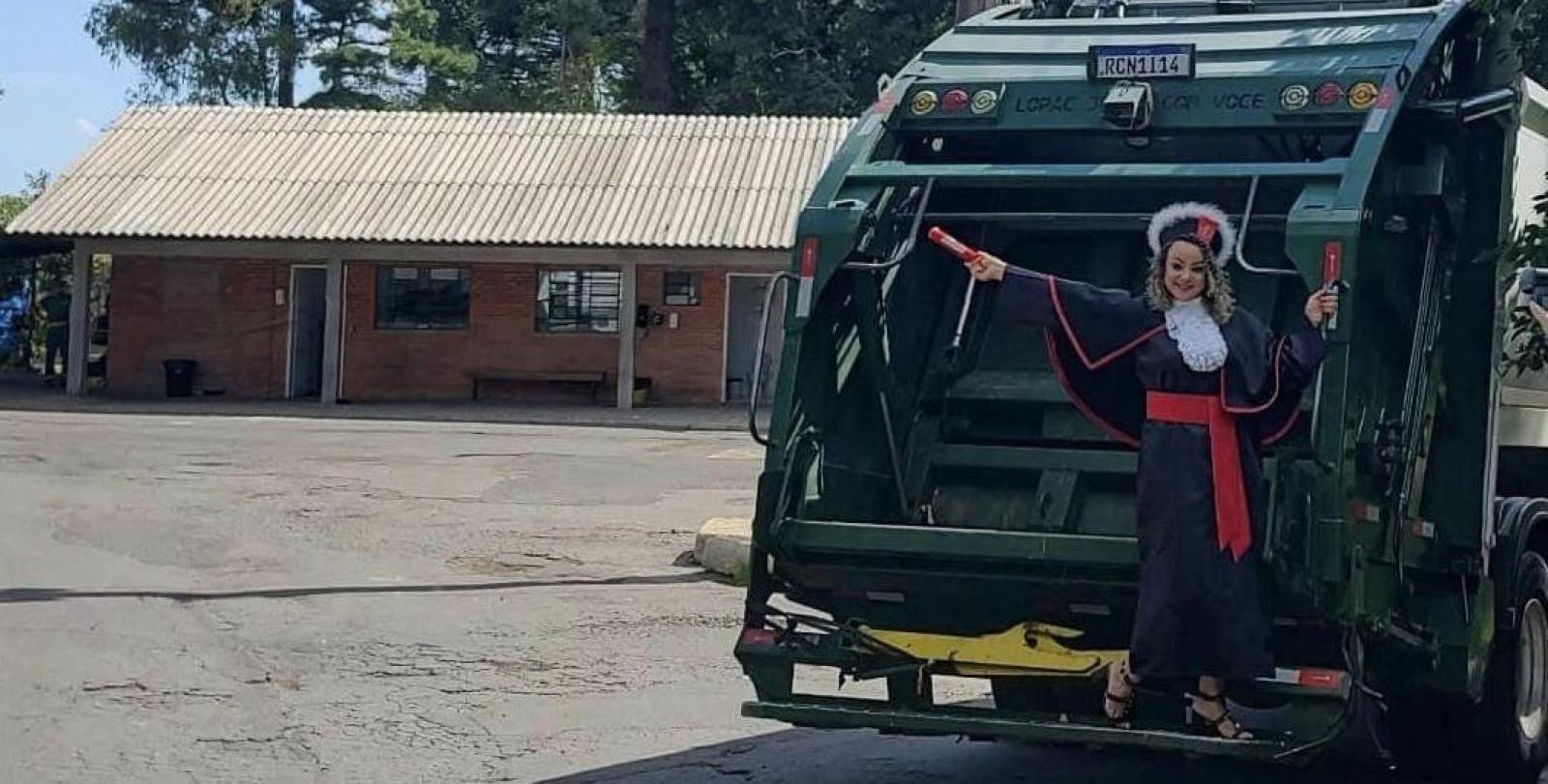 La protagonista de esta historia es Lindiane Godoi (38), quien se convirtió en viral luego de compartir una serie de fotografías en la que se puede a la recién graduada de Derecho posando junto al camión de basura en el que trabajó durante 12 años en Caxias do Sul, sur de Brasil.