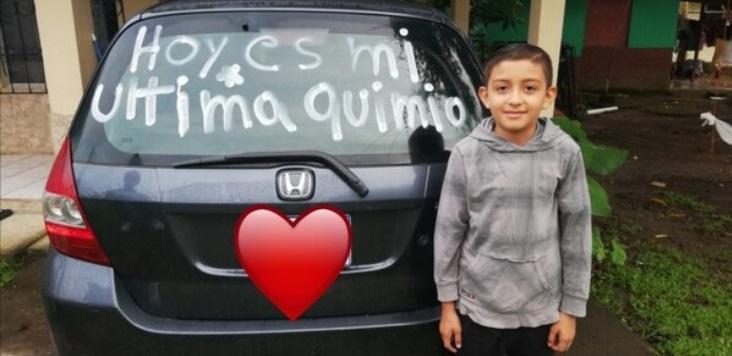 Luego de dos años de lucha, Josafat Mora Chacón tuvo su última quimioterapia. Específicamente, el 20 de mayo recién pasado. Tal hecho alegró a sus seres queridos, quienes decidieron escribir el mensaje “Hoy es mi última quimio” en el parabrisas de un vehículo.