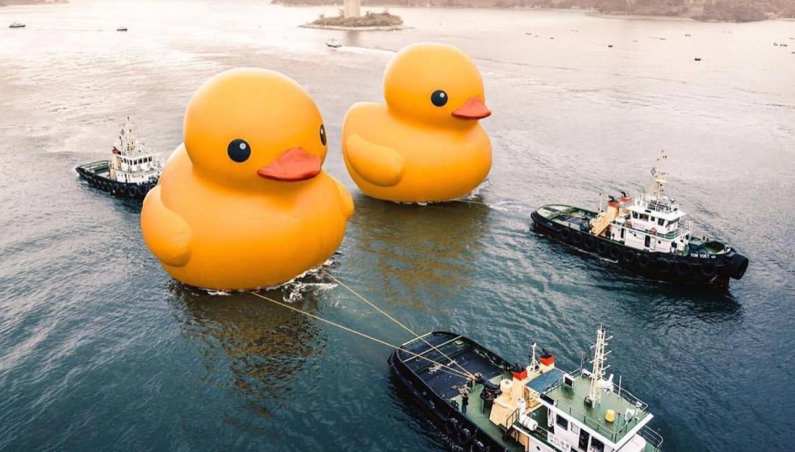 No solo pasa en Chile: "Pato de hule" se desinfló en puerto de Hong Kong
