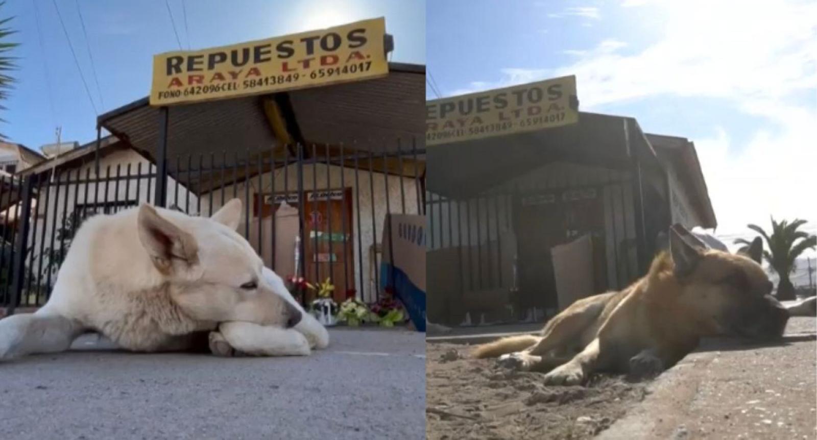 Ya han comenzado a circular varios registros en redes sociales donde se ve a tres perritos que viven en el sector, quienes aún esperan que aparezca el comerciante asesinado, quien cumplía un rol vital en la vida de estos canes, aseguran sus vecinos, dado que los alimentaba a diario; incluso les construyó una casa a cada uno para resguardarse del frío y la lluvia durante el año.