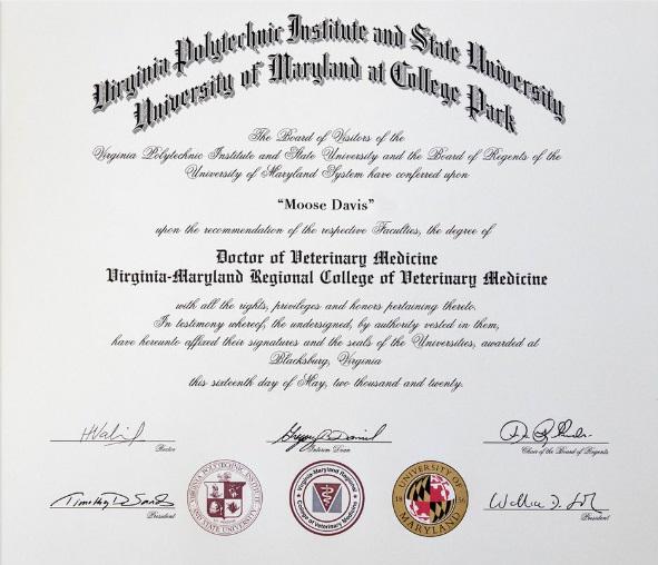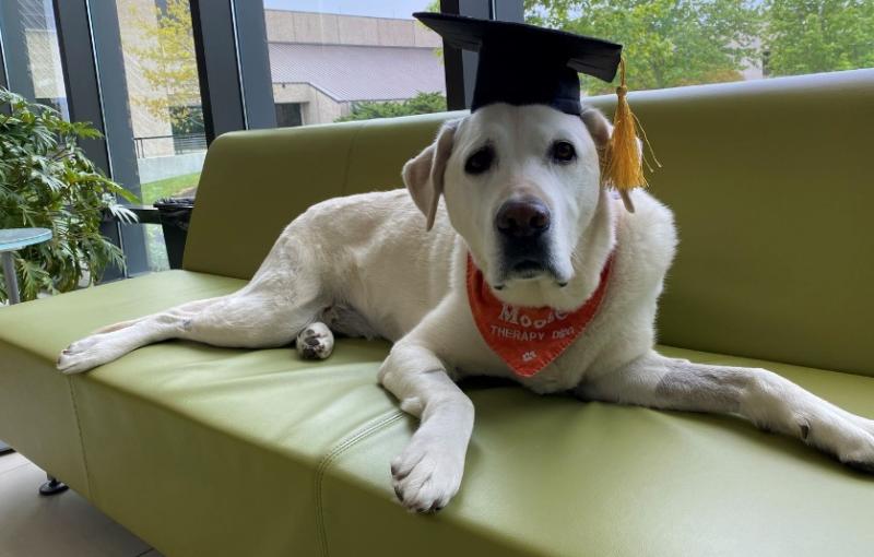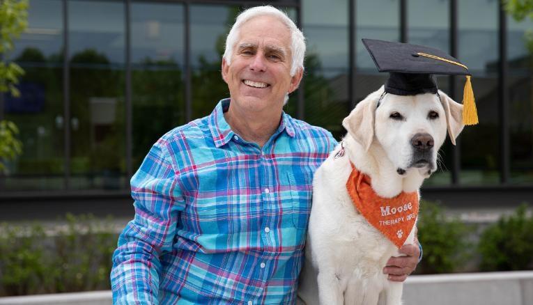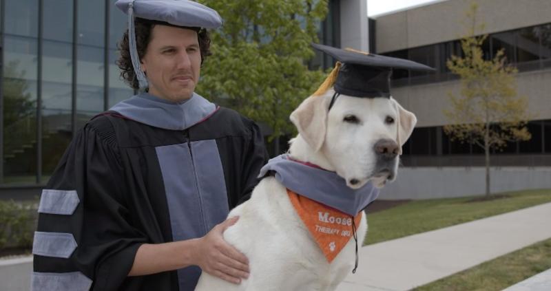 Moose lleva años ayudando a cientos de estudiantes que tienen problemas de salud mental. Por lo mismo, obtuvo un doctorado honorario en Medicina Veterinaria durante una ceremonia virtual realizada recientemente.