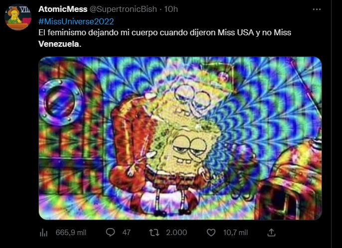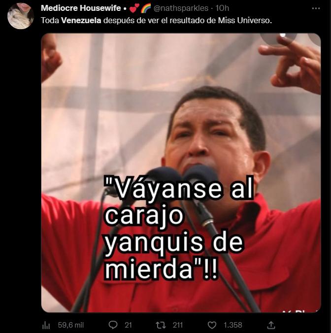 De hecho, #MissUniverse2022 y “Venezuela” se convirtieron en tendencia en Chile. Mientras que en Venezuela son tendencia #MissUniverse2022, NOS ROBARON (refiriéndose a la corona), y países que tuvieron a sus candidatas como finalistas en el certamen.
